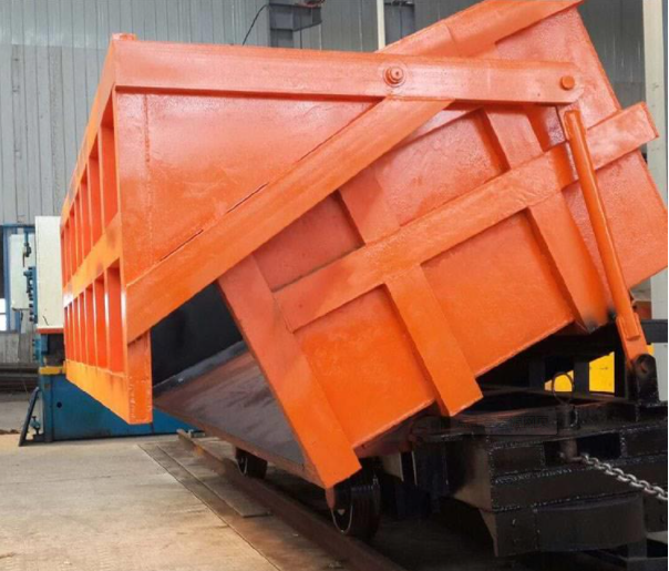 1 侧卸式曲轨矿车应用于18KG钢轨、轨距600mm的轨道上运输。